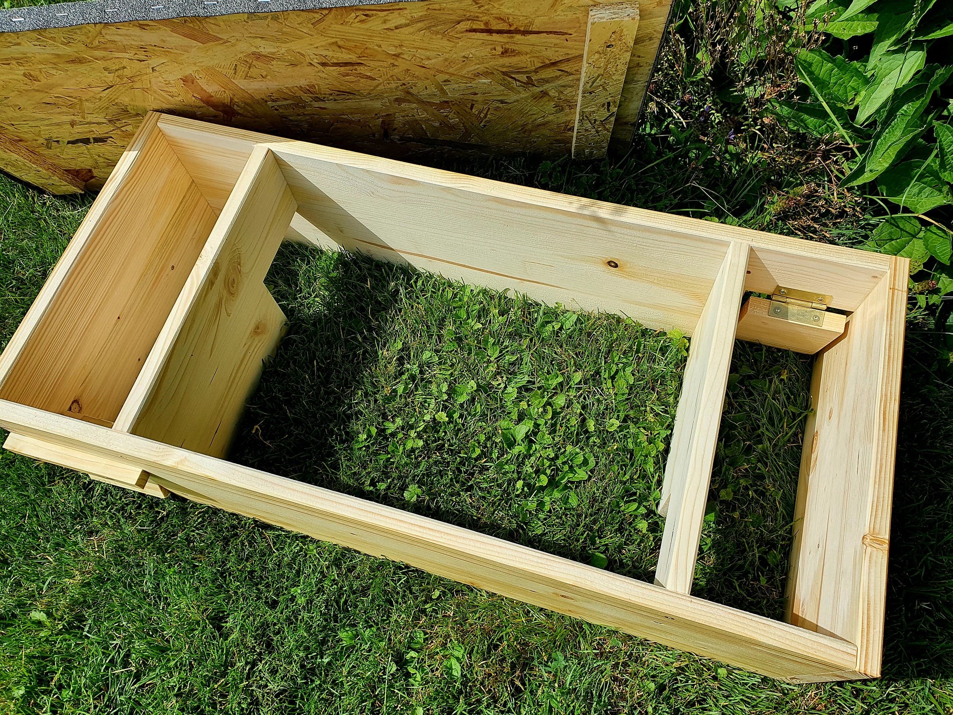 Das Dach hat die Maße 78 cm x 38cm und wurde mit wetterfestem Dachpapp überzogen