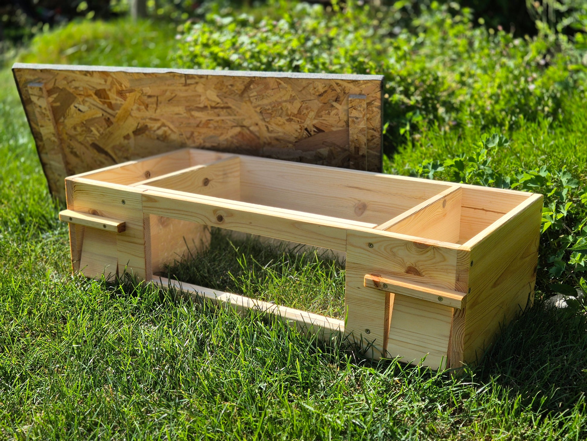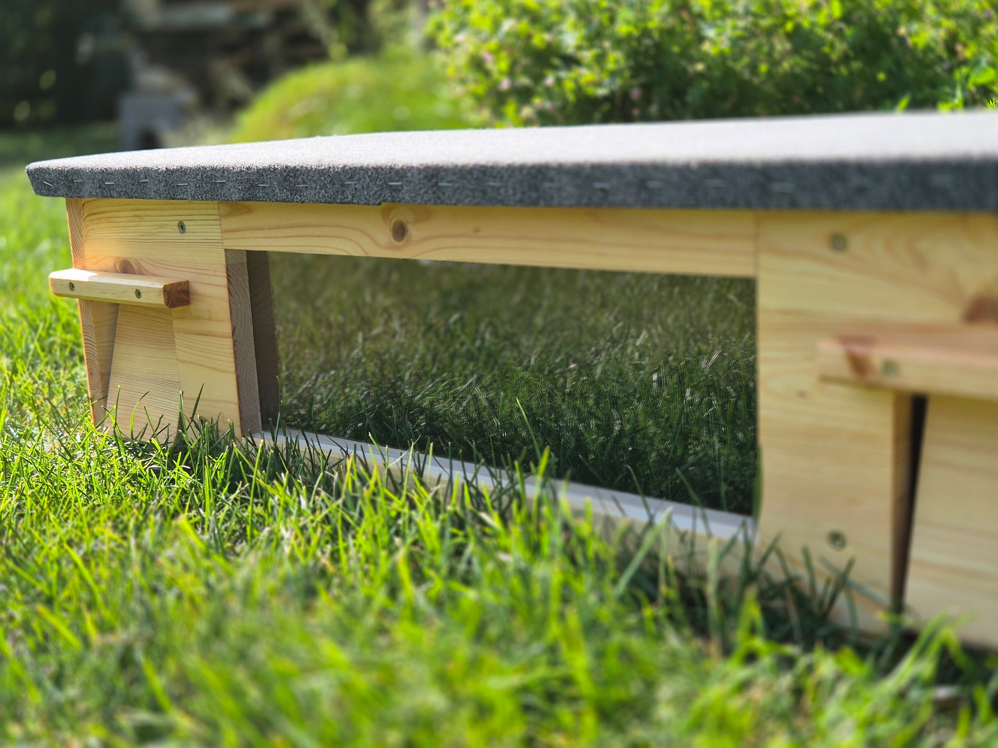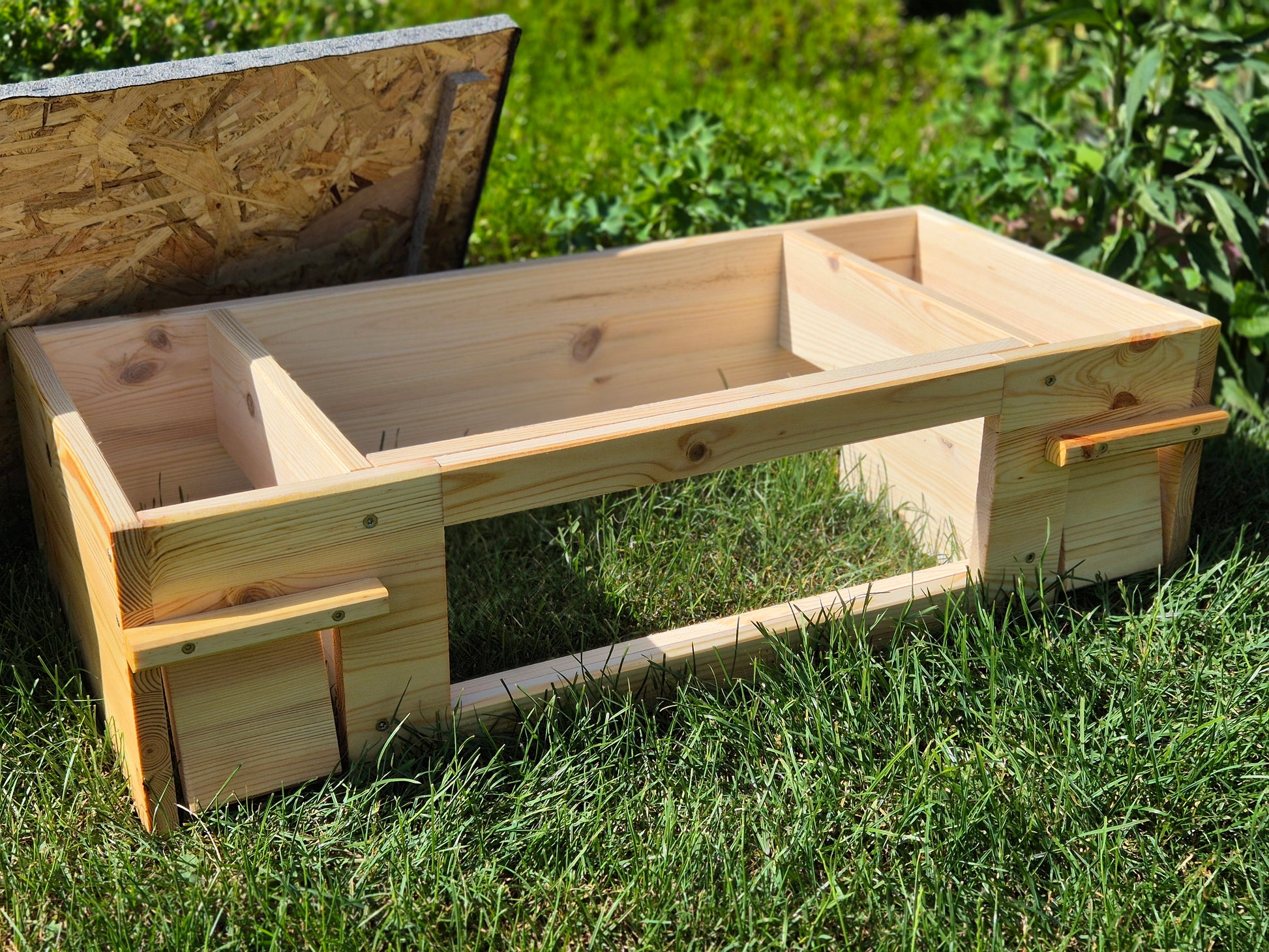 Das Dach aus OSB hat die Maße 78 cm x 38cm und wurde mit wetterfestem Dachpapp überzogen